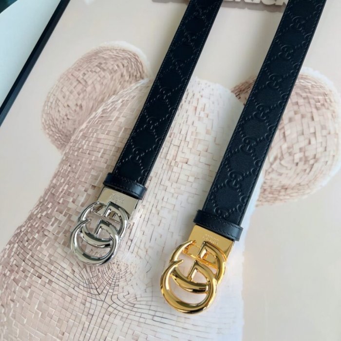 • Gucci古驰男士头层牛皮压花金属旋转扣腰带3.5cm