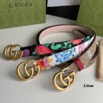• GUCCI古驰 艺术家Ken Scott创作的鲜花花卉印花图案系列双G带扣款3.0cm腰带