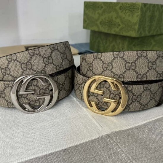 古驰男士PVC配皮双G精品新款金属扣38mm