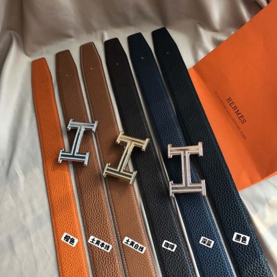 • Hermes爱马仕 精钢双排镶嵌钻扣 男士双面皮腰带 38mm