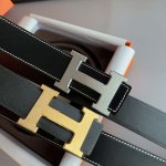 • Hermes爱马仕 精钢金属滚砂工艺 双面牛皮腰带 3.8cm