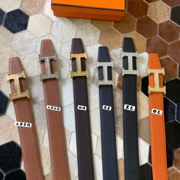 • HERMES爱马仕 精钢H单排钻 原版皮荔枝腰带 3.8cm