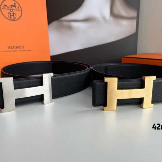 • Hermes爱马仕 金色银色焊点金属扣男款腰带4.2cm
