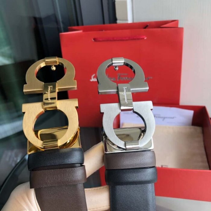 • Ferragamo菲拉格慕 男士牛皮黑色/棕色双面可用腰带 3.5cm