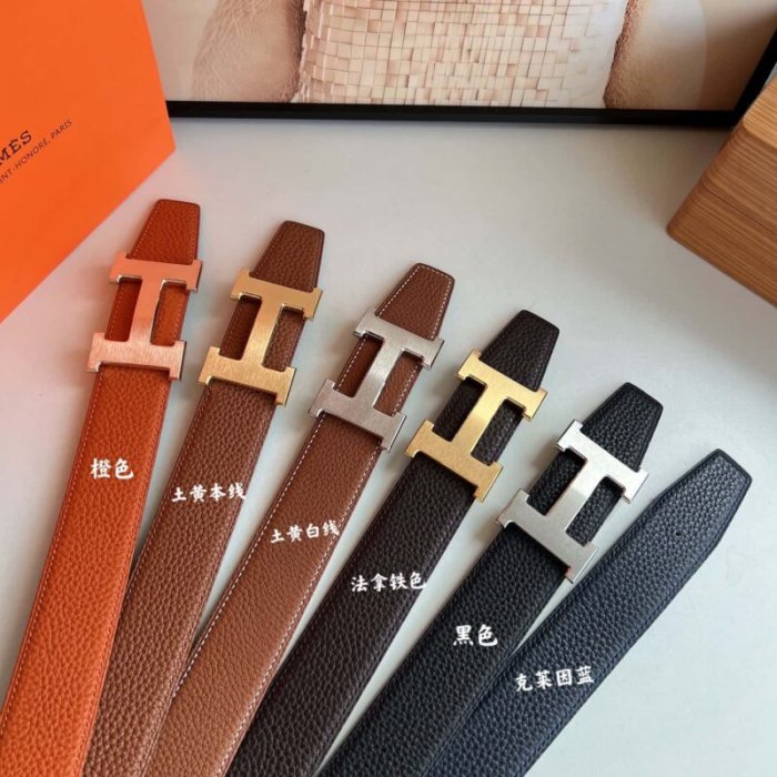 • Hermes爱马仕 H金属焊点扣 男士双面皮腰带 38mm