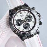 (配盒子) 超薄升级12.3mm迪通拿魔术贴便捷表带款式!最新碳黑真空电镀复刻版40mm高端品质实拍!全黑钢迪通拿!采用改良版最新机芯(非市面13.5mm普通壳壳套)??真皮表带或胶带或精钢表带!出厂配套原厂收纳箱!附带工具真头粒皮带一套! 精彩细节: 1??新款采用便捷魔术贴表带!男女均适戴!!多颜色可选! 2??表壳、表带采用904L精钢材质打磨,每个壳套全程CNC处理所有细节,再经过人工流程润饰,打磨和检测做工精细!! 3??机芯采用稳定Cal改良版最新一代一档7750超薄机芯机械,计时功能与专柜同步??