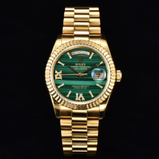 劳力士隐藏款星期日历型日志36《天然孔雀石骚绿》大三针腕表