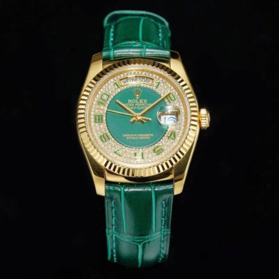 TR 绿珐琅满天星少量到货,劳力士中唯一一款皮带款式并且拥有具备金与钻相拥,星期日历共存,加上劳家独有的绿色元素,这款绿珐琅118138可谓是费心之作,时隔多年,他依然是劳力士经典的象征!从搭色设计更是绝伦逸群!此次v2升级版厂家耗时20个月特意在之前的版本中做了更大的改进,修正 1??星期盘与日历盘字体与官方同步粗体 2??壳身分体头粒位置与表耳后方处圆润配合收尾 3??把头表冠为二度防水且做到旋入式贴身达到超强防水效果 4??后盖表耳处为四个位置印字并且做到钢印效果 5??玻璃处6点防伪标志为虚点设计且位于中层部位显示 6??蓝宝石玻璃上的日历晶粒同步官方电蓝光设计 7??每颗钻石为人工镶嵌配合珐琅字面整齐排列8??所有字体绿色颜色与表带颜色统一!劳力士ROLEX星期日历型day-date 36mm系列118138劳力士满天星在名表里面就像一颗闪闪发光的明星,气质魅力无可匹敌。它的技术细腻而巧妙,其色泽和材质更是完美的晶体形成,散发出一种优雅而雅致的气质!从每个细节均注重如一!配置原装表扣!压轴之作,闪亮登场!